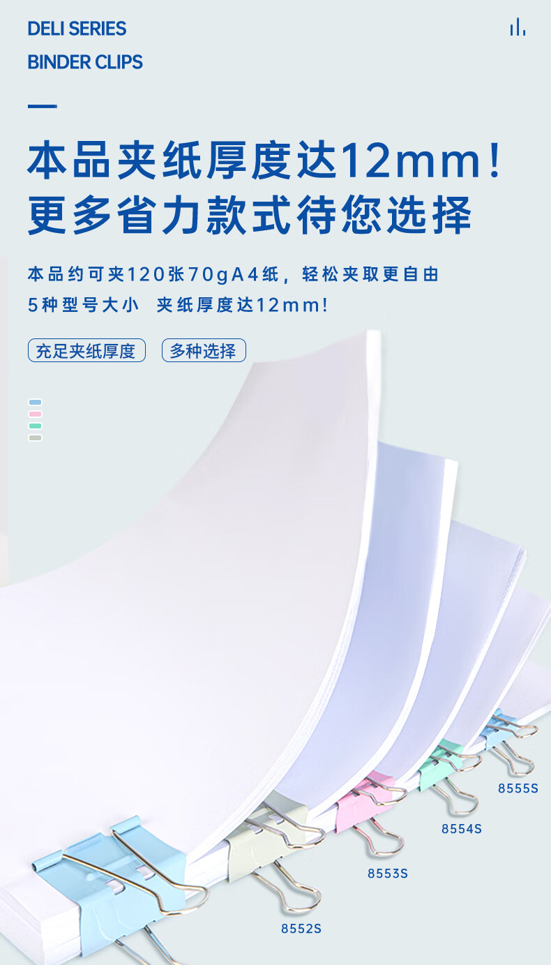 商品名稱:得力8553S 省力長尾夾 3#32mm中號彩色金屬票夾燕尾夾票據(jù)文件夾子 辦公用品 24只/筒