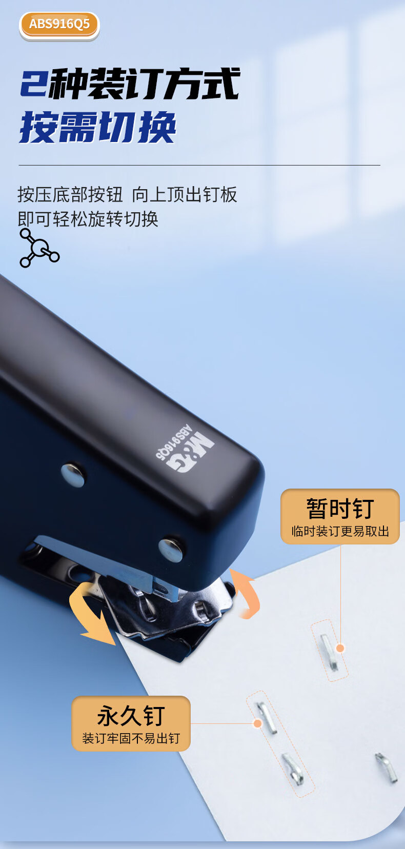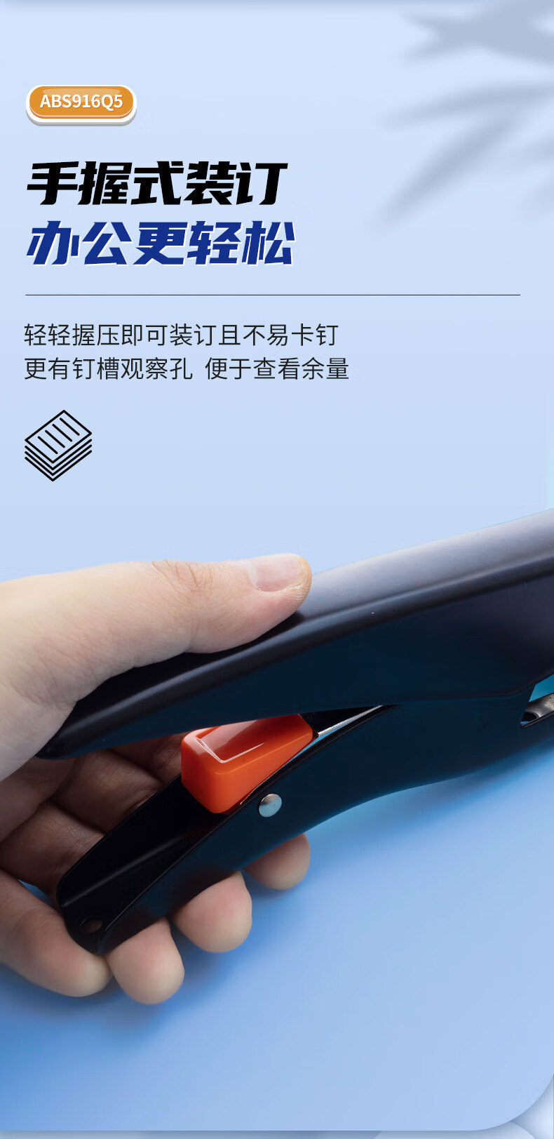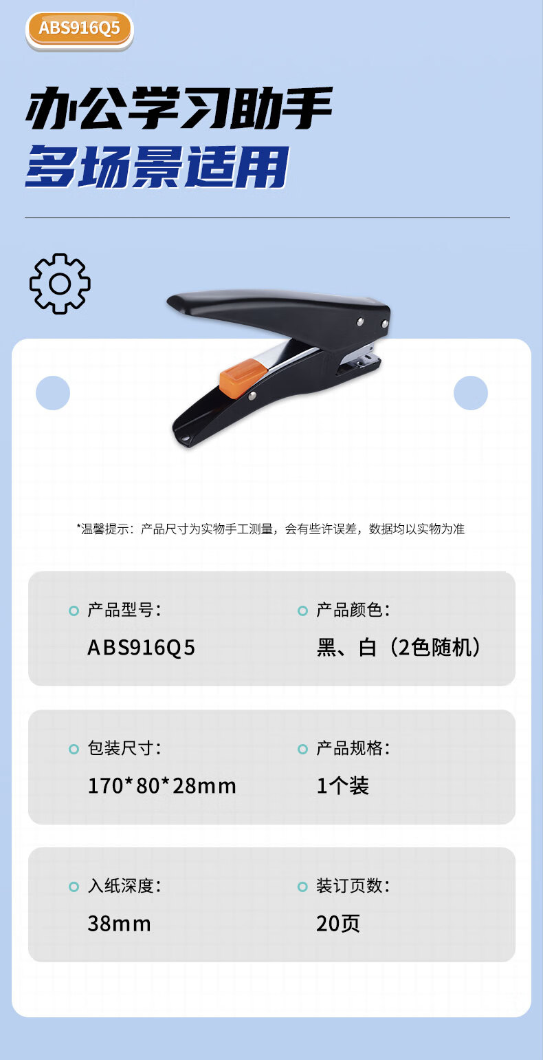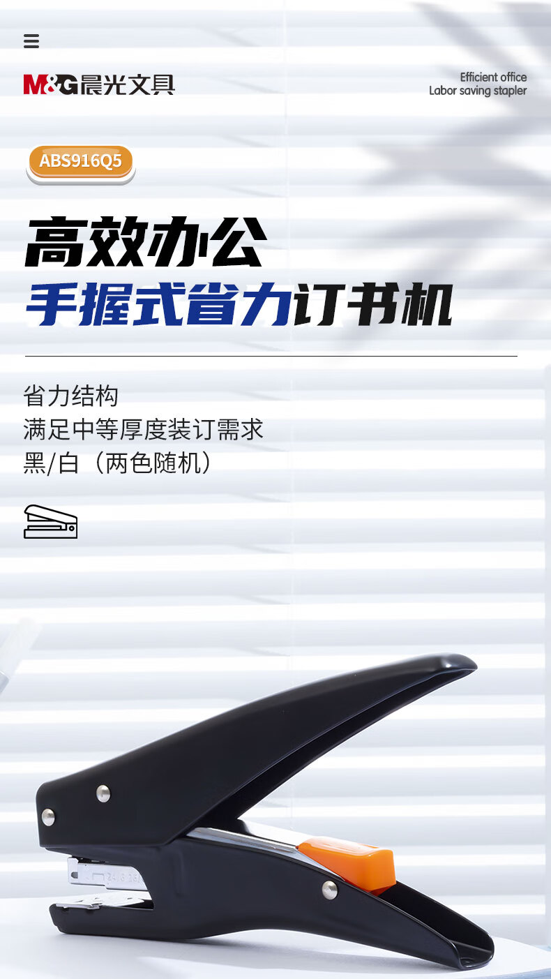 商品名稱:晨光ABS916Q5 12#訂書機 手握式彈出式省力訂書器 小型辦公用品 單個裝 顏色隨機