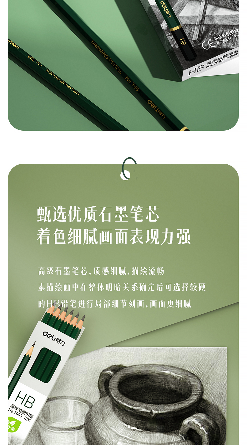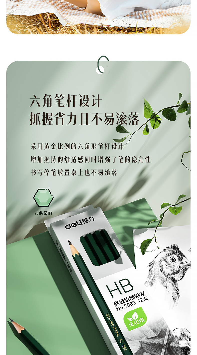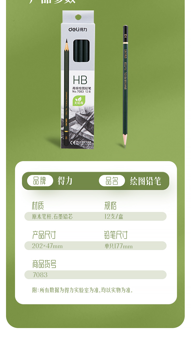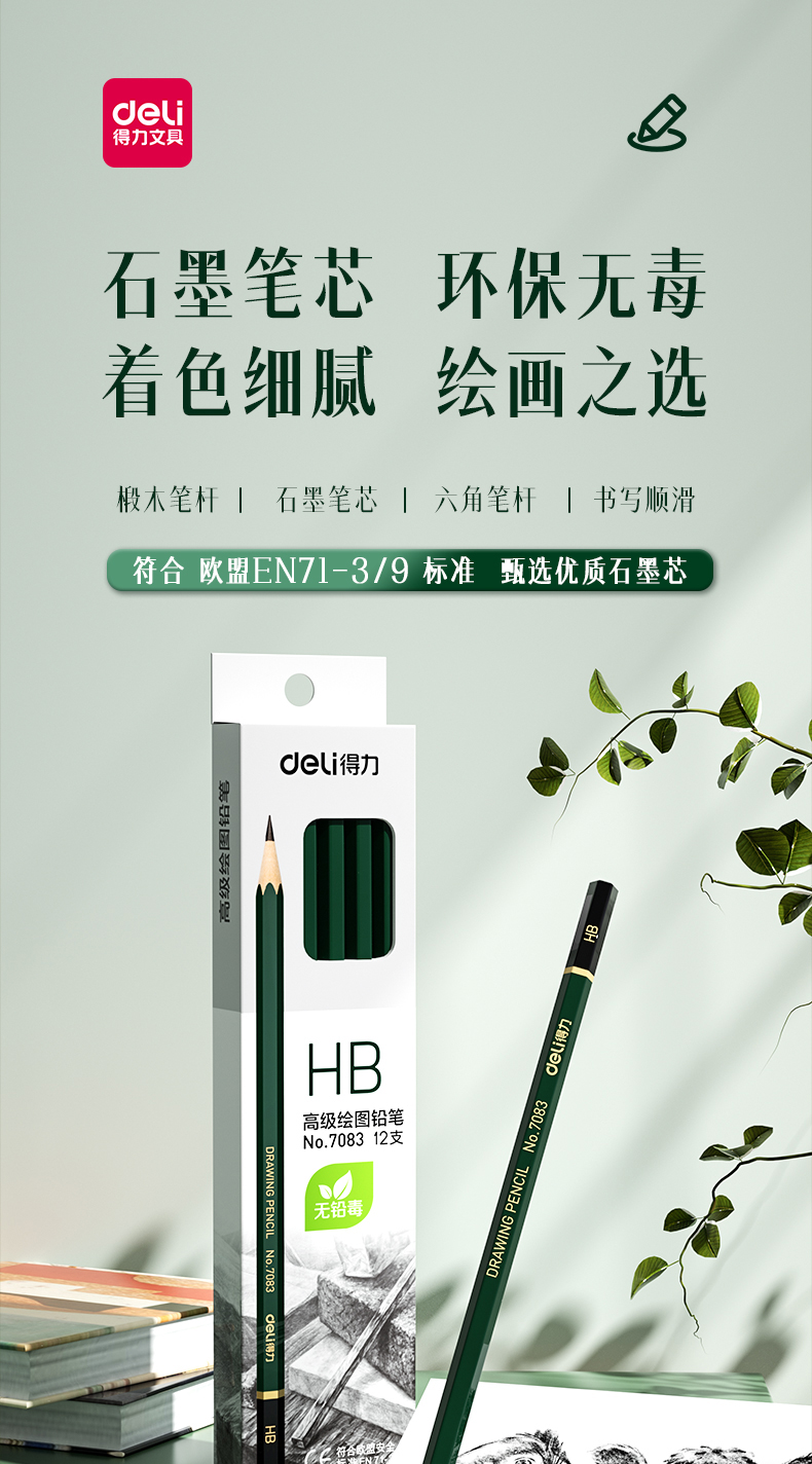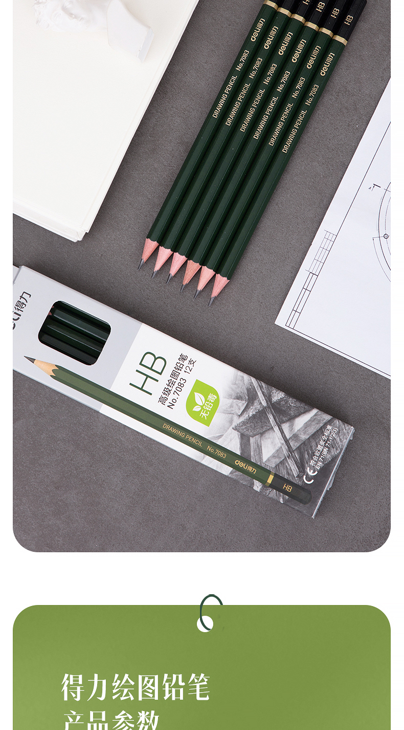 商品名稱:得力7083 HB鉛筆 安全石墨六角書寫鉛筆 12支/盒