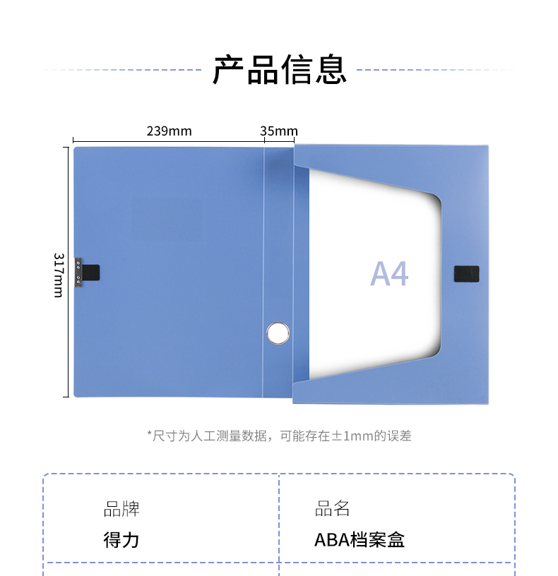 商品名稱:得力5682 檔案盒 35mmA4塑料加厚財務(wù)憑證收納文件盒資料盒 單只裝