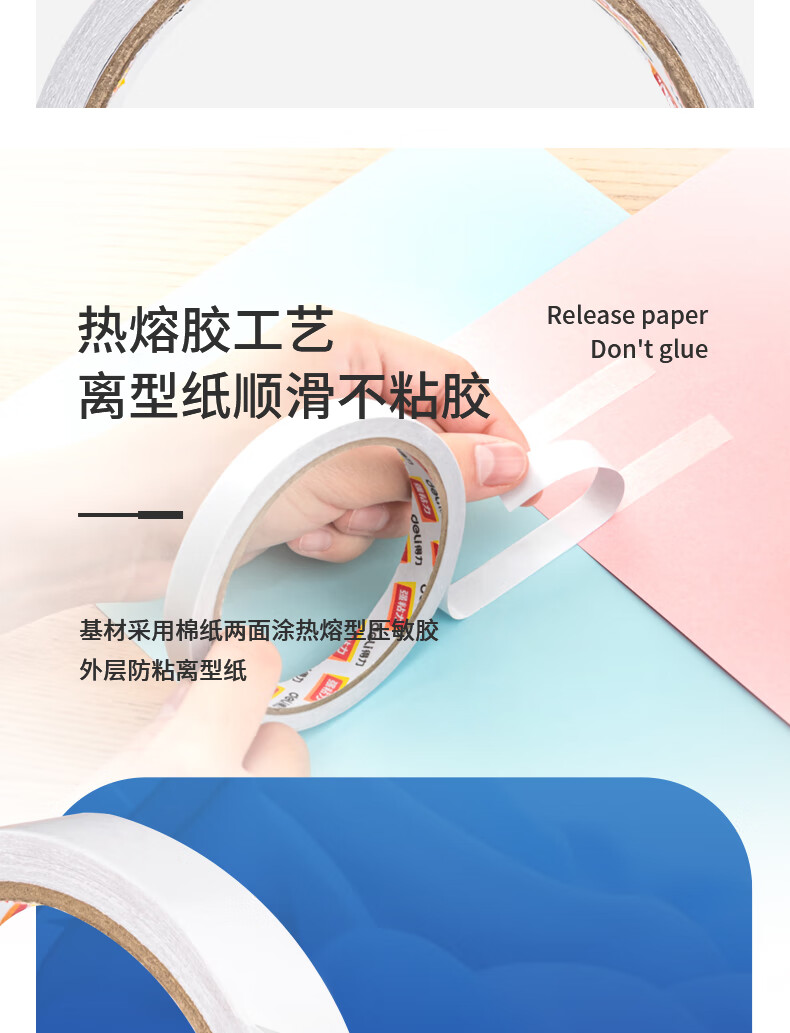 商品名稱:得力30400 高粘棉紙雙面膠帶 9mm*10y(9.1m/卷) 辦公用品 白色 單卷裝