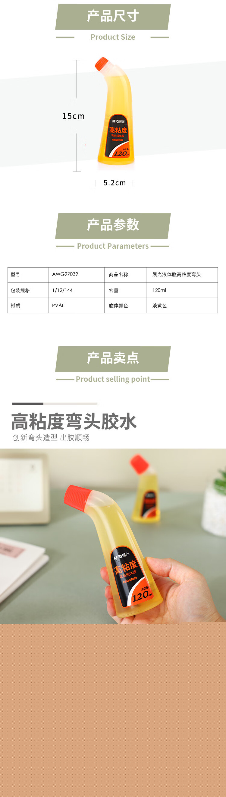 商品名稱:晨光AWG97039 液體膠水 120ml高粘度彎頭液體膠 單支裝