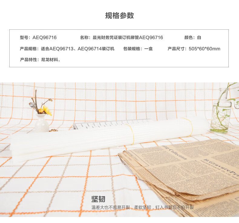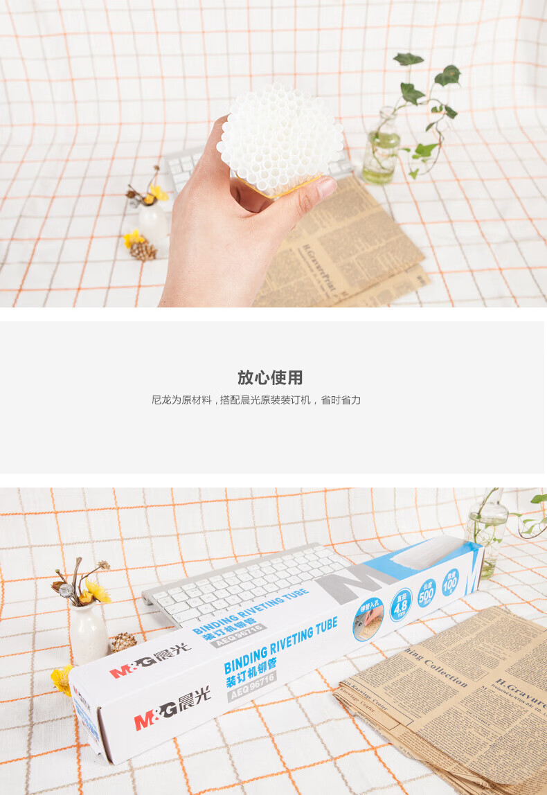 商品名稱(chēng):晨光4.8mm*500mm財(cái)務(wù)裝訂機(jī)鉚管 透明裝訂耗材 100支/盒AEQ96716