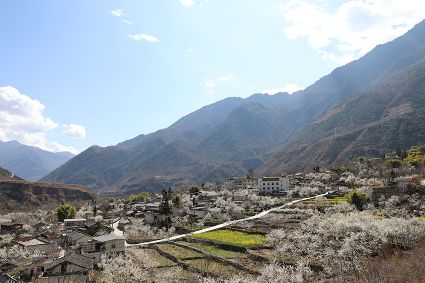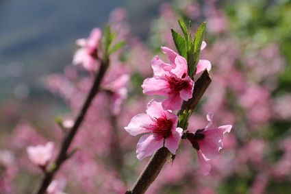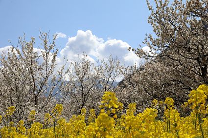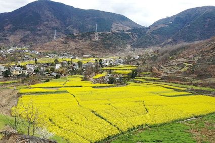 在瀘定縣冷磧鎮(zhèn)、德威鎮(zhèn)等地,桃花、油菜花及櫻花競相開放,一團團、一簇簇,綴滿枝頭,藍天、白云與各色花兒相交,金黃花海在微風(fēng)中起伏。一畦畦油菜花田錯落有致、層次分明,綿延不斷?!岸聶鸦ㄩ_,三月桃花盛,四月紅櫻桃,五月水蜜桃。”除了油菜花,每年陽春三月,瀘定的桃花也隨著和煦春風(fēng)落滿枝頭滿樹的花芽沁著香氣,一點點溢到空氣中,香了春風(fēng),也香了整座城。
