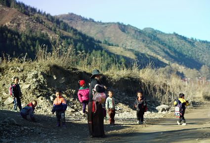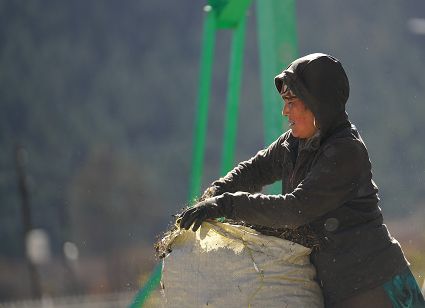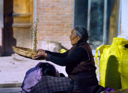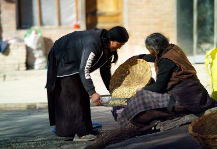 一群孩子會(huì)準(zhǔn)時(shí)來小二樓叫我,要去密林,要去山岡,要去尋找?guī)в薪?jīng)文的瑪尼石,還要去那個(gè)神秘的洞頂。比孩子們更準(zhǔn)時(shí)的是掛在小二樓上的四個(gè)大喇叭,鳥雀剛醒來,廣播就開始了,就必須要起來了。穿過巷道,和打豆子的人們一起享受勞動(dòng)的幸福。我們?cè)谝黄?,等待著下午的廣播,因?yàn)閺V播會(huì)給我們帶來無盡的喜悅。