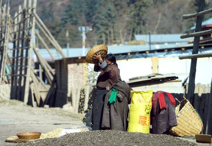 我想,擁有了清新質(zhì)樸的鄉(xiāng)野日子,就可以靜下心來。而事實(shí)上還是無法安下心來,一面想著山林的神秘,一面想著城市的熱鬧。寂寞無聲地穿過巷道,那個(gè)向陰的小二樓一如既往地昏暗。拉開麻布的窗簾,大多時(shí)候我會(huì)看見走在巷道里的老老少少、男男女女,他們背著柴禾,滿帶笑容,相互致意。他們的日子似乎充滿了無盡的樂趣,也充滿了幸福和陽光。上午十點(diǎn)的時(shí)候,陽光會(huì)滑過窗臺(tái),轉(zhuǎn)瞬即逝,但陽光的確向小二樓袒露了它的無能為力。另一張桌子擺放著廚具,廚具上每天都會(huì)有新的灰塵堆積,盡管如此,它們依然發(fā)出青稞的馥郁之氣。