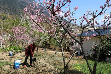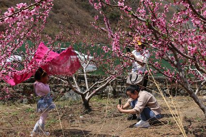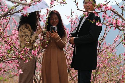 這個時節(jié),著名的賞花之地當屬瀘定縣冷磧鎮(zhèn)杵坭的桃花谷。從瀘定縣城出發(fā),沿著大渡河右岸一路往下,行約20分鐘就能看到美麗的田野景色。只見,山頭上,田野間,或是房前屋后,統(tǒng)統(tǒng)換上了美麗誘人的春裝。放眼望去,李花、桃花、油菜花競相綻放,爭奇斗艷。這里,桃花尤其繁盛,沿著山谷錯落有致、次第盛開,讓人目不暇接,用一步一景來形容也一點不為過。