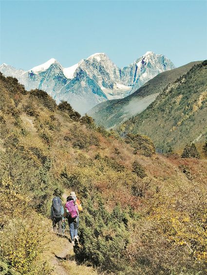 一般徒步線路需要三天完成,第一天從康定折多塘開始徒步,進入毛家溝后一路緩上坡經(jīng)過美麗的荒野,下午就可以到達蘭尼巴埡口扎營。第二天上到山脊觀貢嘎主峰以及衛(wèi)峰小貢嘎、嘉子峰、愛德嘉峰、日烏且峰、勒多曼因,還能看到雅拉雪山和美麗的云海金山。第三天原路返回,或經(jīng)木雅圣地去新都橋或翻過埡口去甲根壩,最推薦的是從蘭尼巴山脊繼續(xù)前行到達恩支漫希湖,沿雅哈埡口、桑恩措、冷嘎措、泉華灘、木居海、里索海、子梅村、貢嘎寺、巴王海,連接貢嘎穿越線,沿途的風光更加動人。