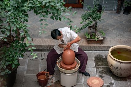 生活在云南省紅河哈尼族彝族自治州建水縣碗窯村的徐榮洪是當地徐家窯的第五代制陶藝人,也是非遺建水紫陶燒制技藝的傳承人。 泥料制備、拉坯造型、濕坯裝飾、雕刻填泥、高溫燒制、無釉磨光……要想做出精良的紫陶工藝品,每個流程都需要潛心鉆研。“制作技藝環(huán)環(huán)相扣,某一道工序出現紕漏,燒出來就是瑕疵品。” 徐榮洪拿起刻刀,對陶坯表面開始進行雕刻。 今年57歲的徐榮洪小時候就跟著長輩上山挖陶泥,多年來堅持鉆研建水紫陶的制作技藝。 徐榮洪介紹說,作為紫陶藝人,以陶為紙,根據器型將不同的文化與藝術形式注入其中,使其具有無限活力。非遺文化閃爍著人類智慧的光芒,也承載著人們心底的情思鄉(xiāng)愁。