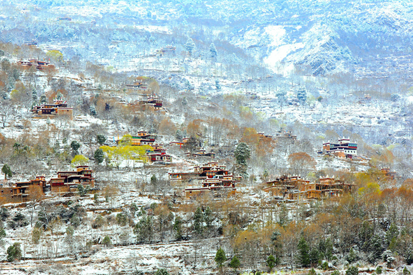 紛紛揚(yáng)揚(yáng)落下的雪,覆蓋在斑斕的彩林上,被太陽一曬,格外好看,來丹巴,享受愜意的暖陽吧!