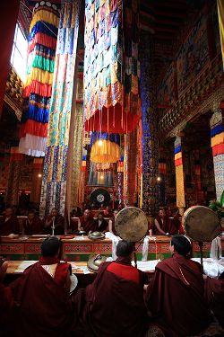 傳說藏歷十月二十五日,是藏傳佛教格魯巴(俗稱黃教)創(chuàng)始人宗喀巴大師圓寂成佛的日子。為了紀(jì)念這位杰出的宗教領(lǐng)袖,藏區(qū)各黃教寺廟和信徒于藏歷十月二十五日,舉行誦經(jīng)、磕頭,燈供儀式等隆重的祭祀活動,祭祀宗喀巴大師在天之靈和祈愿大師賜與善良的人們以吉祥幸福。