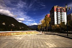 康定新城位于康定舊城南,地處折多河、榆林河交匯處,緊鄰國(guó)道318線,距舊城中心約8公里,康定至海螺溝旅游黃金線榆磨公路穿城而過??刀ㄐ鲁呛诵膮^(qū)規(guī)劃總占地面積2.5平方公里,容納城市人口2.5萬人。