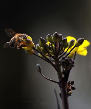 千百年來(lái),許多小宗蔬菜的傳宗接代依靠中華蜜蜂授粉。紫油菜花在初春開放,這個(gè)季節(jié)西方蜜蜂因畏寒仍在巢中被人工飼養(yǎng),只有中華蜜蜂不怕寒冷,不嫌花源稀少,只要?dú)鉁剡_(dá)到8℃,它們就出勤了。 熊小立圖文 攝于成都