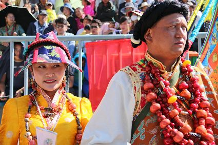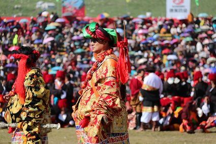 于是,年復(fù)一年,“漢子”與“花”兒們便挺拔、綻放在漢語(yǔ)表達(dá)的一個(gè)極點(diǎn)之上,被玄想,被渴望。對(duì)遠(yuǎn)道而來(lái)的人們或是世代居于高原的子民而言,康巴漢子與康巴之花不僅僅是美的化身,通過(guò)康巴漢子與康巴之花的評(píng)比,人們?cè)趯ふ乙粋€(gè)早已失落卻又天然渾成的世界。