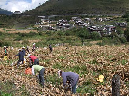 這是一個豐收的季節(jié),這是一個農人們充滿歡聲笑語的季節(jié)。10月8日,記者走進九龍縣呷爾鎮(zhèn)華丘村,看到面貌一新的藏寨掩映在成片的玉米地里,正是收獲玉米的季節(jié),鄰里相幫,大家在密密匝匝的玉米地里收獲玉米,農人們在玉米地里簡單午餐,談笑風生,議論今年的收成,擺談如何調結構增加收入,說家長里短,既有勞作的辛苦,又有鄰里團結的深厚情誼。放眼望去,漂亮的藏寨、忙碌的人群,組成一組人與自然和諧的山村風景畫。(記者 田杰 馬建華 攝影報道)