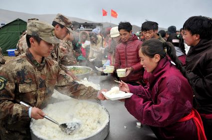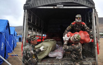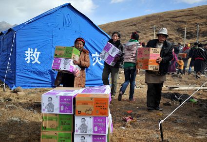 發(fā)放救災(zāi)物資及災(zāi)民生活掠影