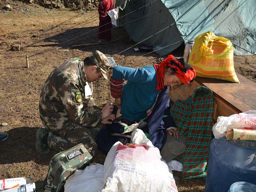 地震發(fā)生僅1小時,總隊政委金德成即帶前指,從雅江翻越海拔4400余米的高爾寺山向塔公方向開進(jìn)。與此同時,應(yīng)急救援分隊分別從康定星夜兼程,疾速奔赴重災(zāi)區(qū)。21時03分,前指抵達(dá)震中塔公鎮(zhèn)奪讓一村和受災(zāi)嚴(yán)重的木雅祖慶小學(xué),深入村寨了解受災(zāi)情況,派出38名應(yīng)急救援官兵,對房屋受損嚴(yán)重的7戶災(zāi)民先期展開救援,搶挖出被倒塌墻體壓埋的車輛2臺。并及時來到康定地震前線指揮部,請領(lǐng)任務(wù)。連夜為木雅祖慶小學(xué)師生搬運棉被、搭建帳篷,幫助受災(zāi)師生順利度過震后第一個夜晚。