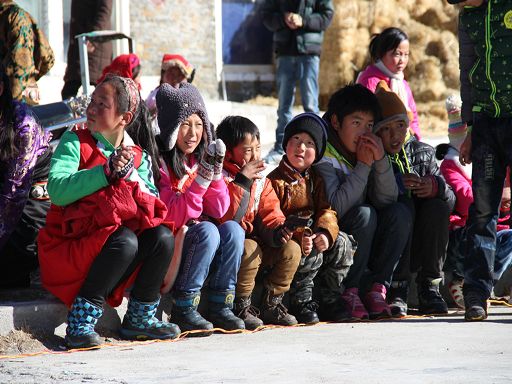 中午,高原的陽光暖洋洋的,有了空閑時(shí)間的村民們都來到活動(dòng)中心,一邊曬太陽,一邊觀看孩子們的表演。