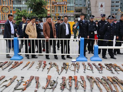 集中銷毀收繳槍支。