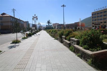 格薩爾廣場(chǎng)綠草茵茵。