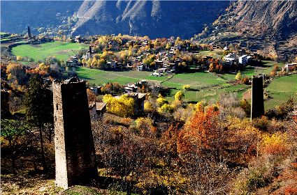 丹巴的秋是云霧繚繞的季節(jié),那秋就附著在白色的霧團上,晃晃悠悠的在丹巴這塊土地上長久的游弋,仿佛不舍得離開這塊充滿美麗色彩的世界似的,山泉更加的清澈,霧氣也仿佛更加的稠密起來。在黃色紅色的樹葉叢中白色的霧氣慢慢地升起,起初一縷一縷,后來慢慢地聚攏來,覆蓋住山鄉(xiāng)間秋日的凄涼,在山坡后向上升騰,來到山巔,又從犬牙交錯的山峰間穿過,往山間傾瀉而下,就像白色的瀑布,慢吞吞的灌滿整個山谷,真有飛流直下三千尺的壯美景色。白色的霧就這樣翻山越嶺跨過溝谷,雖然它沒有云海的波瀾壯闊,也沒有風起云涌的豪邁,然而這高山流云已經將丹巴的優(yōu)美、溫柔和壯麗在一瞬間定格成為永恒,覆蓋了你的眼球,沾濕了你的眉毛,滋潤了你的嘴唇,涼透了你的肌膚。