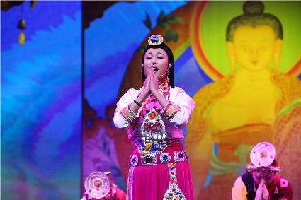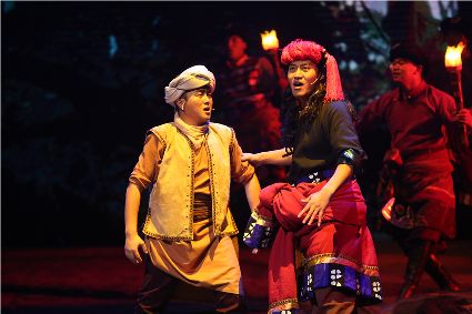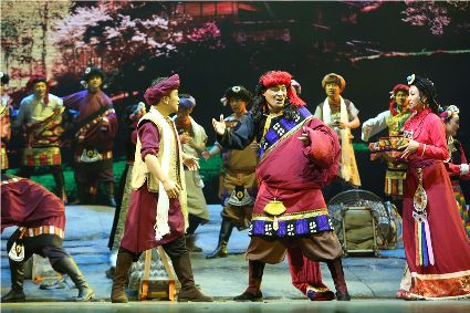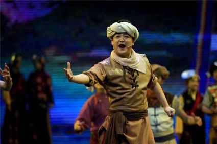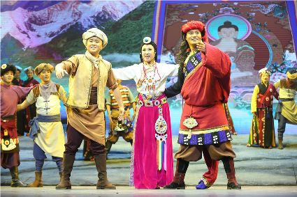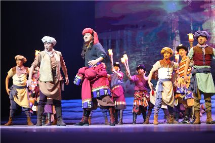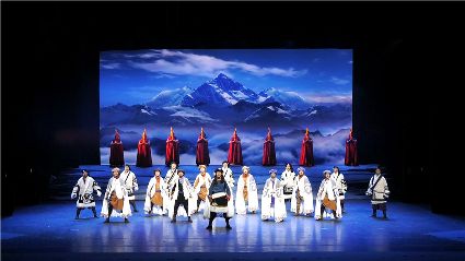 初生的音樂(lè)劇《康定情歌》是個(gè)聽(tīng)話謙遜的孩童,專業(yè)人士的諄諄教誨一定會(huì)牢記在心;他也是個(gè)具有思鄉(xiāng)情結(jié)的游子,自己的一顰一笑都流露出濃郁的民族風(fēng)采;同時(shí)他也是個(gè)頑強(qiáng)拼搏的逐夢(mèng)少年,即便汗水和淚水匯成一道道溝壑,依然挺胸不低頭,只為在明天,成為更好的自己。 (圖片由州歌舞團(tuán)提供)