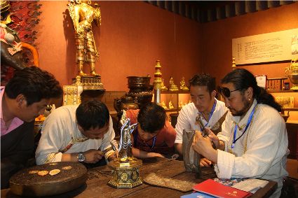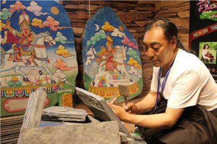 本屆非遺節(jié)期間,我州特色展館向游客展示了格薩爾彩繪石刻、藏族金屬鍛造技藝、藏文書法、噶瑪嘎孜畫派唐卡、阿西土陶燒制技藝、藏族牛羊毛編織技藝,南派藏醫(yī)藥等國家級、省級非遺項(xiàng)目。在歷時9天的活動中,我州的非物質(zhì)文化遺產(chǎn)傳承人帶來了數(shù)百件非遺手工藝精品。大量的手工藝商品聚集展館的展示區(qū),供參觀者挑選,有些非遺傳承人還在現(xiàn)場為顧客現(xiàn)場制作作品,向廣大參觀者展示了民族手工藝的制作流程。