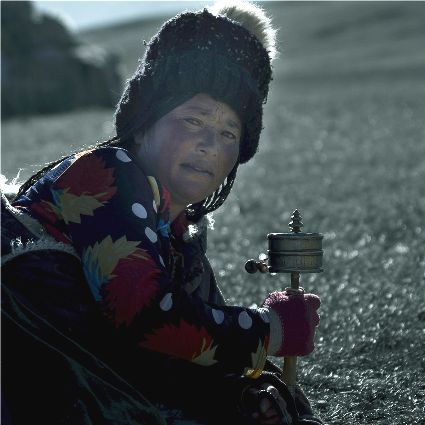 每當我手持相機時,對他們始終懷有一種敬畏,我捕捉到他們眼神里流露出虔誠。看著經(jīng)筒上“甲多”的飛轉(zhuǎn),我陶醉了,醉在那轉(zhuǎn)經(jīng)筒的旋轉(zhuǎn)舞動,醉在那轉(zhuǎn)經(jīng)筒傳誦的故事,醉在那一張張手持轉(zhuǎn)經(jīng)筒的面孔,還有,還有因祈禱音符助推而從未停止的轉(zhuǎn)經(jīng)筒……
