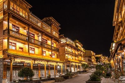 磨西古鎮(zhèn)位于四川省甘孜州瀘定縣,有一條長約1200米的古街道“磨西老街”,街邊房屋保持著典型的川西建筑風格,木制樓閣錯落有致,青瓦飛檐、石板路流光,街邊特色小店林立。