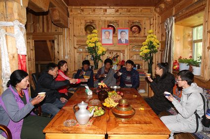 走進巨龍鄉(xiāng)然央村,傳統(tǒng)藏房依山而建,巨龍河水悄悄流過。曾經(jīng)泥濘的土路變成平整的水泥路,藏寨房前、鄉(xiāng)間路邊種滿了鮮花,呈現(xiàn)出嶄新的藏家田園風(fēng)光。近年來,然央村按照全域旅游帶動全面發(fā)展的要求,鋪設(shè)入戶道路、改善村民居住環(huán)境、建設(shè)旅游設(shè)施、開展風(fēng)貌打造、推廣大棚蔬菜種植和家畜圈養(yǎng),真正讓群眾住上了好房子,過上了好日子。