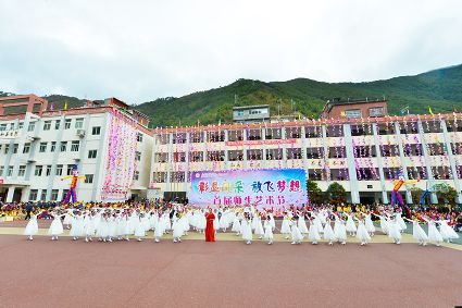 今年是祖國母親的70華誕,九龍縣城關(guān)第一完全小學(xué)近日隆重舉行首屆師生藝術(shù)節(jié),本次藝術(shù)節(jié)以“彰顯風(fēng)采·放飛夢想”為主題,藝術(shù)節(jié)展演節(jié)目類型豐富,涉及經(jīng)典誦讀、情景劇、課本劇、韻律操。此次活動展示的作品涵蓋了美術(shù)、折紙、兒童畫、十字繡、泡泡泥、書法、口算、小記者手抄報(bào)等。本次藝術(shù)節(jié)是該校歷次藝術(shù)節(jié)展演中節(jié)目類型最豐富、學(xué)生才藝展示最全面、家長參與最多、節(jié)目構(gòu)思角度最廣的一次盛會。