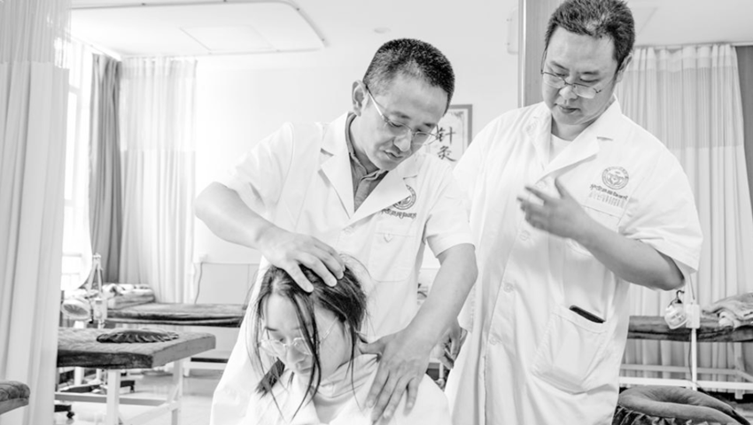 許學(xué)良醫(yī)生耐心地傳授推拿手法。
