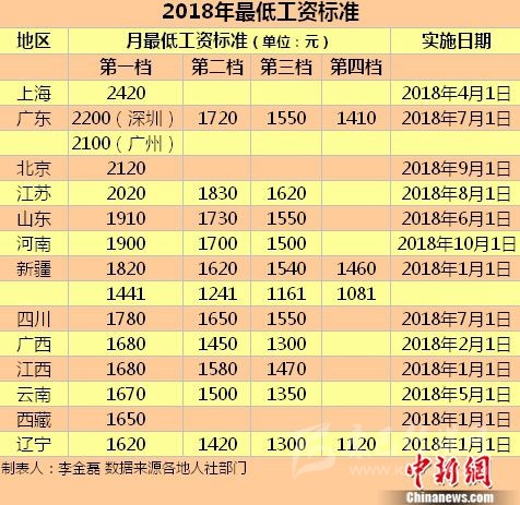 今年以來提高最低工資標準的地區(qū)至少有上海、廣東、北京、江蘇、山東、河南、新疆、四川、江西、廣西、云南、西藏、遼寧等13個省份。
