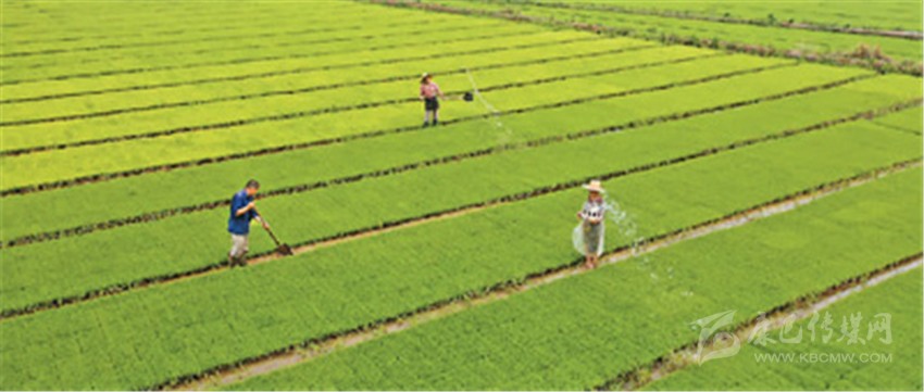 近年來,安徽省滁州市全椒縣六鎮(zhèn)鎮(zhèn)通過“合作社+農戶”形式進行規(guī)模化育秧,并為水稻種植戶提供耕種、管護、收割、收購等一條龍服務,提高規(guī)模化效益,幫助農民增收。圖為6月10日,六鎮(zhèn)鎮(zhèn)一家合作社的農民在水稻秧苗田里進行田間管理。