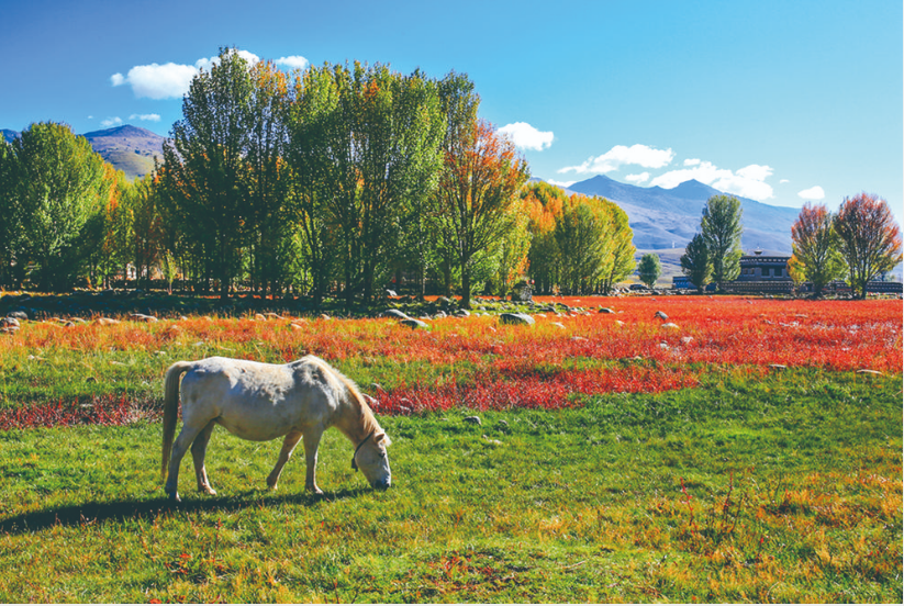 三月的四川稻城縣香格里拉鎮(zhèn),春風(fēng)與陽光攜手而至,高原的寒意悄然退去,草長(zhǎng)鶯飛,綠葉在枝頭伸展,繁花在大地?fù)泶亍?/span>