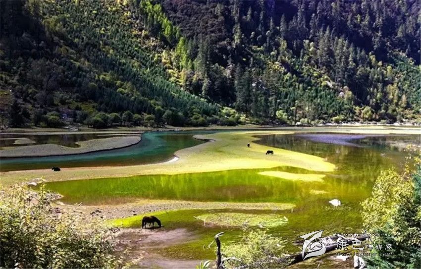 藍寶石般的高原湖泊、銀鏈般的溪流迂回盤旋,時常有馬兒在湖邊漫步。