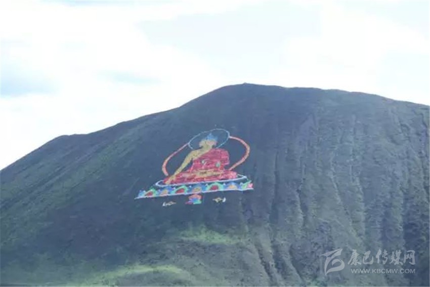 看,佛主正在向我們微笑,這尊巨大的佛像是由然梯寺的活佛使用4萬根經(jīng)幡,在沒有使用任何輔助工具的情況下花費(fèi)一個(gè)月的時(shí)間創(chuàng)作而成。每當(dāng)風(fēng)吹過,大佛就會(huì)隨風(fēng)飄舞。就如同在向四面八方散發(fā)佛光一樣。