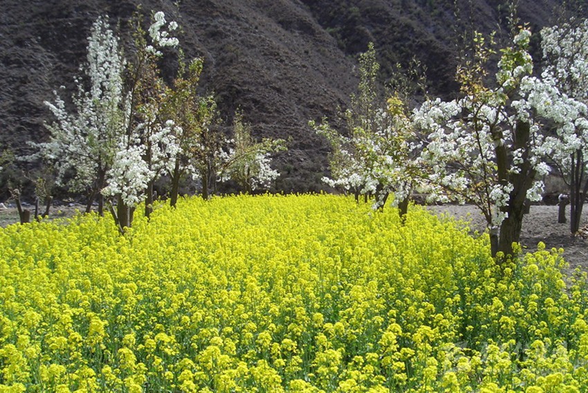 試想遠(yuǎn)處的雪山白雪皚皚,身旁有粉紅的桃花、雪白的梨花、金黃的油菜花,絢麗斑斕,光彩奪目,有春天的生機(jī)和活力,多了一種靈氣和不落塵埃的灑脫。賞花累了,沐浴在海螺溝的溫泉里,身體宛如畫龍點(diǎn)睛漂浮的暖云,能深切感受到來自海螺溝冰川地底的熱力。心境或怡然自得,或超脫塵世,或?qū)庫o澄明,或天人合一。春天里的海螺溝是花的海洋,是春的世界,是人間的仙境。