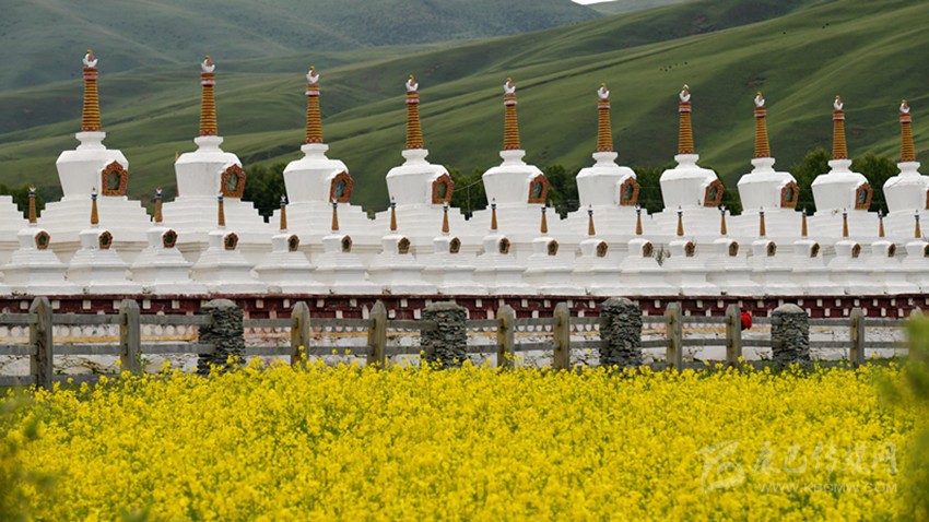 金黃的菜花與青山綠水、藏式民居相融,繪成一幅幅絕美的畫卷。據(jù)悉,道孚縣油菜盛花期將持續(xù)一個(gè)月?!坝筒嘶ㄩ_滿地黃,叢間蝶舞蜜蜂忙;清風(fēng)吹拂金波涌,飄溢醉人濃郁香”。在漫山遍野金黃色的油菜花中,掩映著華麗的藏式建筑,使得每一個(gè)逃離紛繁城市的人都能找到歸宿。(圖片由中新社記者 劉忠俊 攝)