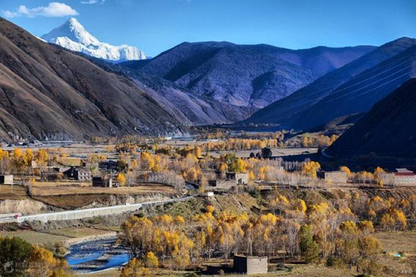 新都橋又稱東俄羅,位于318國(guó)道川藏南北線的分叉路口,號(hào)稱“攝影家的天堂“。在這可以拍攝到無(wú)垠的草甸,曲折的溪流,金黃的秋葉,山坡上大片在覓食的牛羊,散落著的藏族村寨。隨便一按快門(mén)都能得出一張絕美的風(fēng)景照。