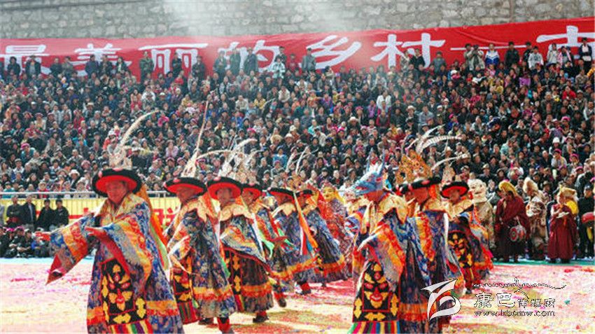十七世紀時,丹巴巴底大坪村阿洛、益西降稱等喇嘛去西藏學(xué)經(jīng),求學(xué)期間,征行九世班禪同意在日喀則扎什倫布寺學(xué)習(xí)藏戲,學(xué)了《呷拉翁布》(另名《卓瓦桑姆》)和《甲扎共龔》(譯為《文成公主》)二劇的唱腔、鼓鈸奏法、表演技巧,帶回巴底黃金寺,挑選寺中30余名僧徒成立黃金寺藏戲團。此后,每年都在規(guī)定時間演出。丹巴中路藏戲,是中路寺廟喇嘛去西藏學(xué)經(jīng)時帶回的。