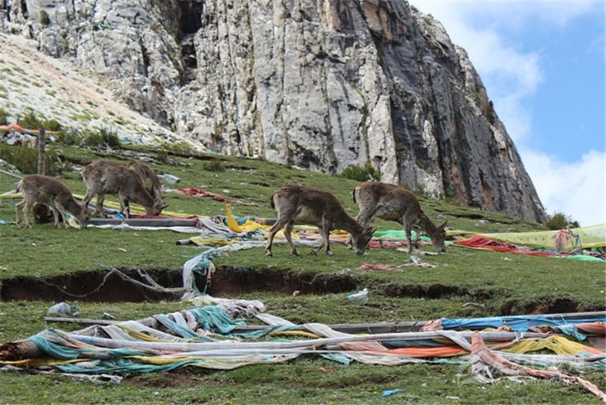 森林中成群結(jié)隊(duì)的盤羊是扎嘎神山的一道風(fēng)景,這里的盤羊遇人不驚,特別是與寺廟的僧人和睦共處,如果你前往扎嘎神山游玩還可看見(jiàn)盤羊在僧人手掌上舔食的動(dòng)人情景。