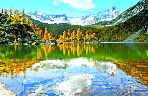 黨嶺景區(qū)內(nèi)有葫蘆海、卓雍措、馬措、斯阿涅、阿尤母措等30余個(gè)含煙凝碧的高山湖泊。這些被當(dāng)?shù)厝朔Q為“海子”的高山湖泊是第四紀(jì)古冰川退縮后所形成的冰磧堰塞湖和冰斗湖。它們鑲嵌在山谷之中,宛若一面面五色寶鏡。