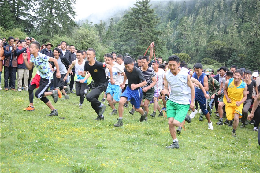 徒步穿越邀請賽是九龍縣委、縣政府主辦的2018年群眾文藝匯演暨甘孜州山地旅游節(jié)之圣湖祈福·第三屆伍須海游海節(jié)活動的主要內(nèi)容之一。140多名參賽選手和幾百名旅游愛好者一早來到伍須海邊,置身于云霧繚繞的山巒之間,共同見證賽事啟幕。在宣布比賽規(guī)則后,隨著裁判一聲哨響,參賽選手從郁郁蔥蔥、芳華吐露的伍須海岸的上草壩奔向山峰,經(jīng)過伍須海、海臺景點(diǎn),最終到達(dá)風(fēng)景名勝日魯庫。在11公里的山路中,參賽選手將爬越4200多米的高峰,穿越古老蔥郁的原始森林,感受高山杜鵑和高原野花的麗姿,與窸窣的鳥鳴為伴,在競賽的同時(shí),樂享藏彝走廊的無盡魅力。