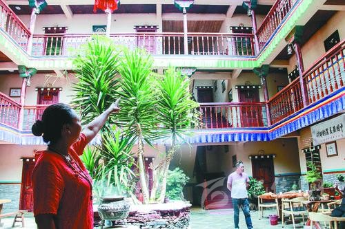 記者在“安卡兒民族莊園”看到,每天游客絡(luò)繹不絕,游客們不肯錯(cuò)過(guò)的是這里的鄉(xiāng)愁。眼前的“安卡兒民族莊園”是一座藏式三層小樓,以嘉絨民居為主格調(diào)。從外觀看,這棟三層小樓與村里其他農(nóng)家小院沒(méi)有多少差異,但仔細(xì)端詳,其所有窗戶大小、高低不一,透出與眾不同的設(shè)計(jì)風(fēng)格。走進(jìn)院內(nèi),這座藏式小樓的走廊外側(cè)裝著木欄桿,欄桿下面掛著藍(lán)綠相間的布條,以及大院中央郁郁蒼蒼的盆景,讓人美不勝收。