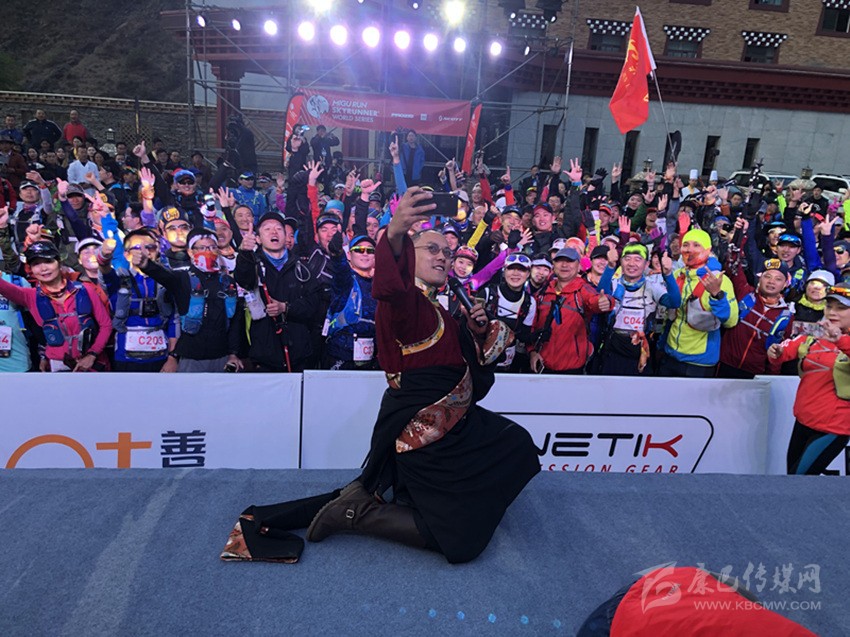 歌手索朗達(dá)吉為亞丁越野賽選手加油助威。亞管局供圖