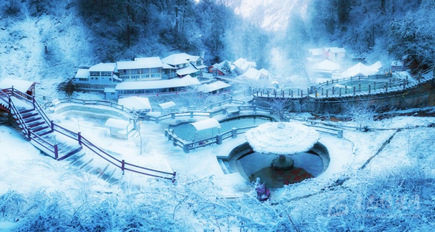 溝內(nèi)蘊(yùn)藏有大流量沸熱溫冷礦泉,冰天雪地里把身體放在暖暖的溫泉中,眼前浮現(xiàn)的就是冰山美景,完全會(huì)顛覆你對(duì)生活的美好想象。