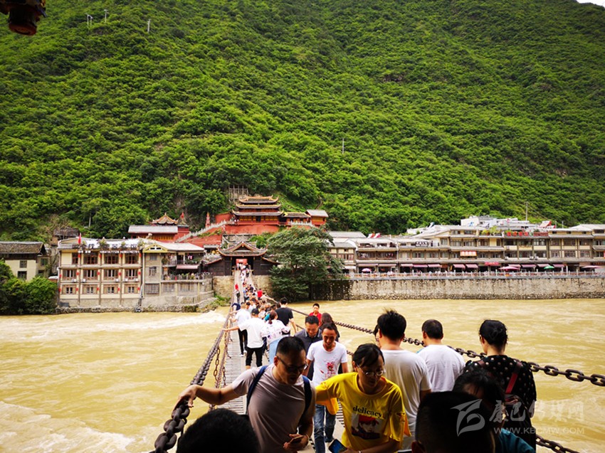游客體驗(yàn)瀘定鐵索橋。本網(wǎng)資料庫(kù) 圖