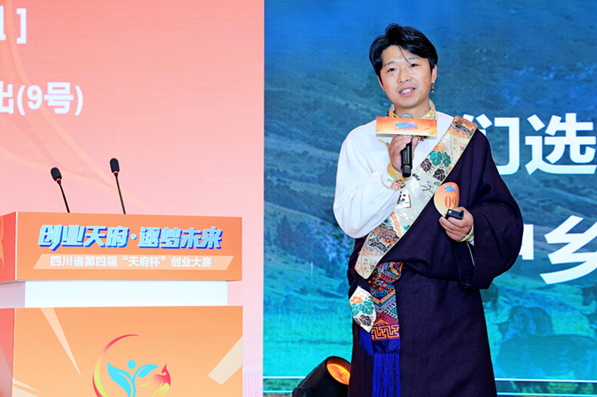在第四屆“天府杯”創(chuàng)業(yè)大賽上,洛桑帶著他的“等風兔”項目精彩亮相。 資料圖