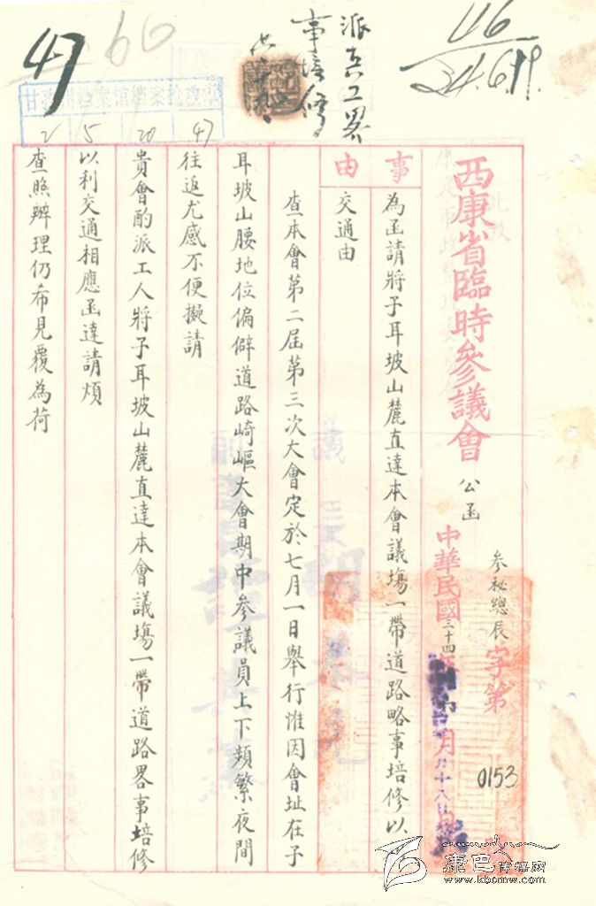 1938年,在子耳坡山腳、如今的州委黨校的地址上,“西康省建省委員會(huì)”修建了一幢本意是用來(lái)作為接待過(guò)往達(dá)官貴人的“籌邊別墅”。這是幢一樓一底的木石結(jié)構(gòu)建筑,當(dāng)年是康定城最氣派的建筑。1939年,西康省臨時(shí)參議會(huì)成立,沒(méi)有會(huì)址,沒(méi)有辦公地點(diǎn),新成立的西康省政府便把“籌邊別墅”撥給西康省臨時(shí)參議會(huì)作為會(huì)址。但是要從城里走到子耳坡山腳,最近便的道路是從中橋附近轉(zhuǎn)到當(dāng)時(shí)的茶店街(現(xiàn)在的建設(shè)路靠東的一段),再沿山往上行。由于是土路,亂石遍地,不好走。于是,當(dāng)時(shí)的參議長(zhǎng)胡恭先親自動(dòng)筆,至函“西康省會(huì)市政建設(shè)整理委員會(huì)”要求整修這條小道。這里的文字檔案記載的就是這件事。
